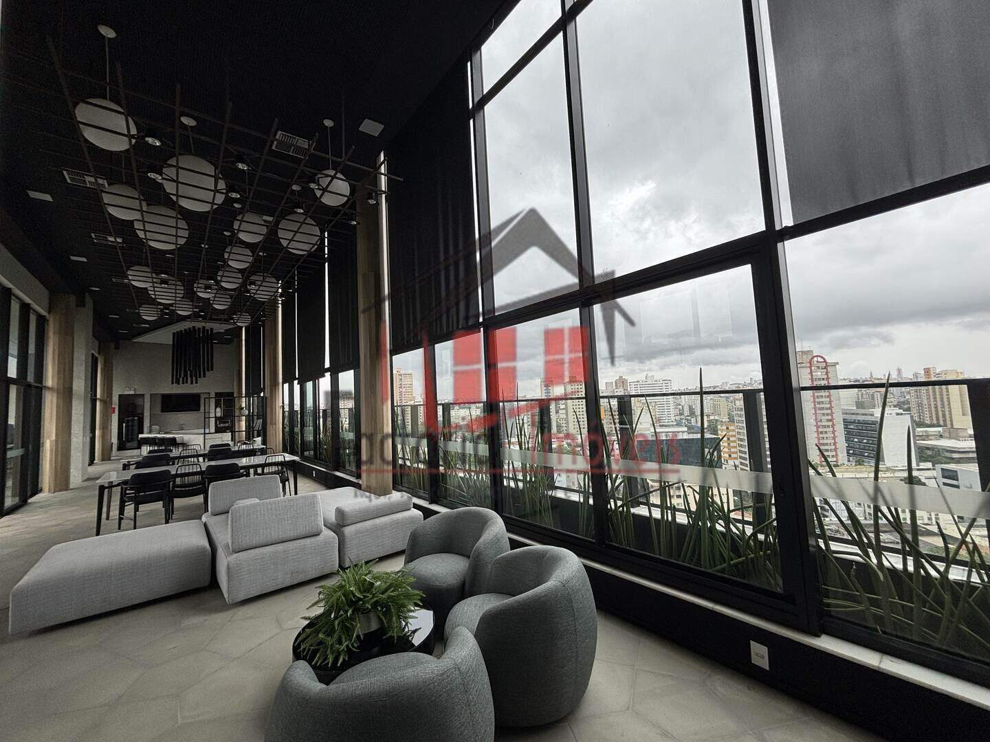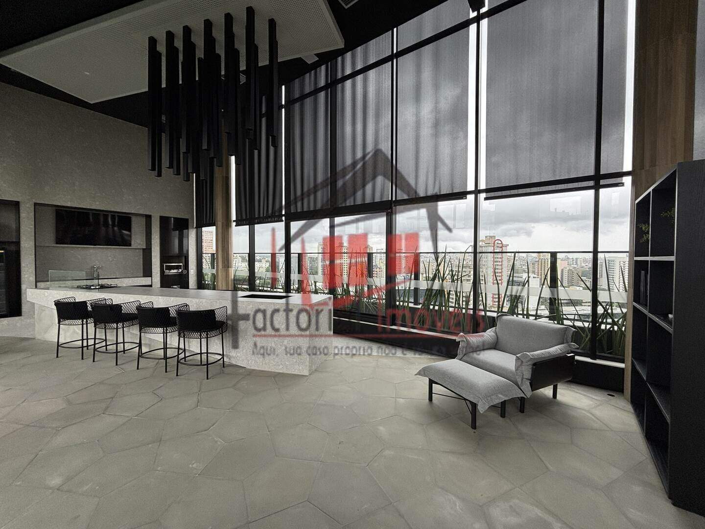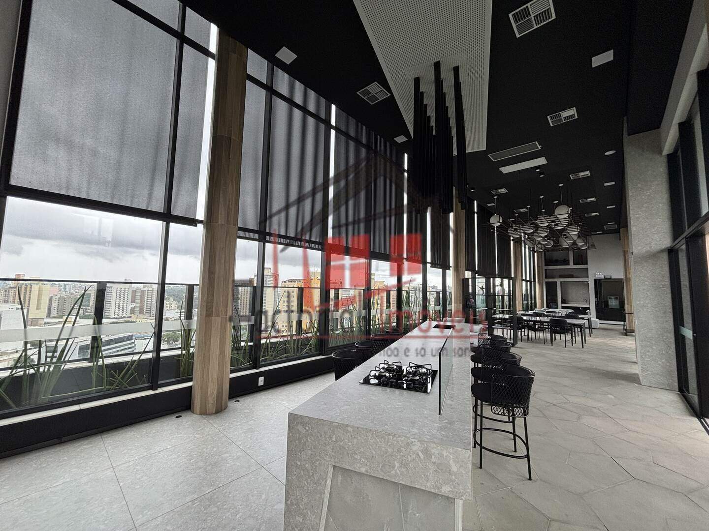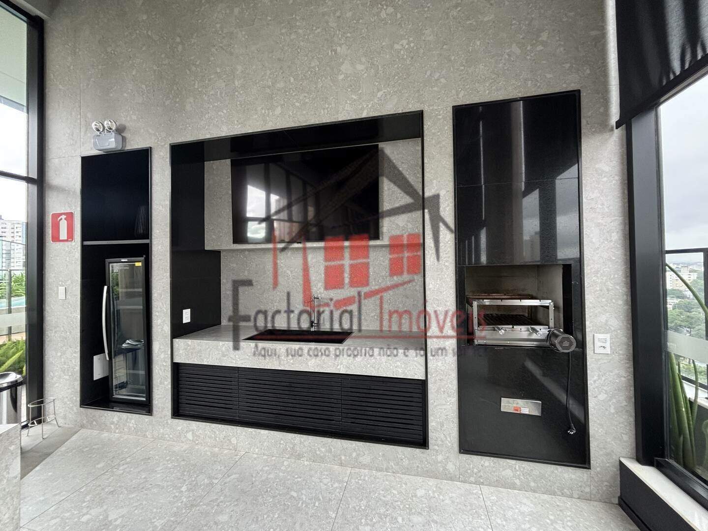 Cozinha americana, toda revestida em piso porcelanato;