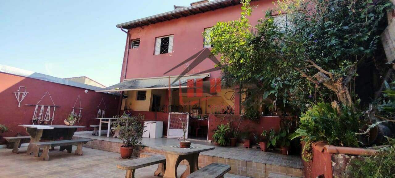 Excelente casa estilo colonial com pintura nova e texturas como grafiato, sala de estar, sala de jantar, 3 quartos, banho social completo, copa, cozinha com azulejos decorativos, despensa e área de serviço independente. Área externa grande com mesa e bancos de pedra. 2 vagas de garagem cobertas. Sobrado com área de churrasqueira, banheiro de apoio, nível superior com 2 quartos sendo uma suíte e uma sala.