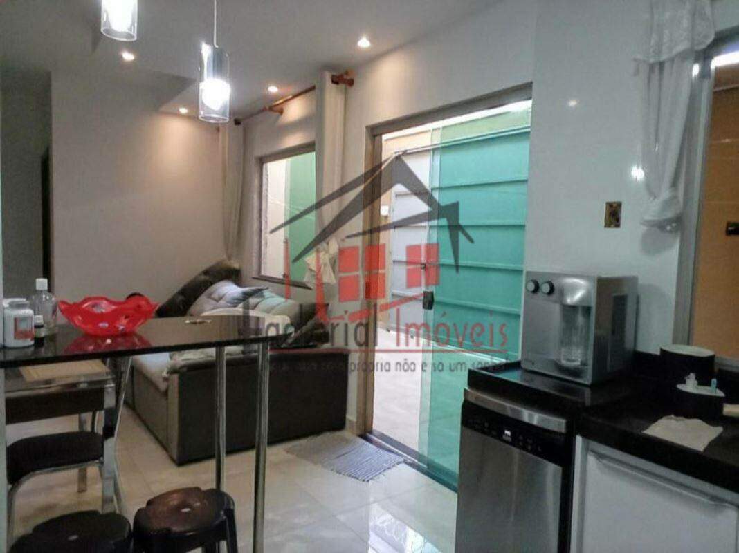 Casa duplex com sala ampla, dois quartos com armários planejados , cozinha americana com armários planejados, banho social com armário embaixo da pia e box em vidrotemperado, lavabo, área de serviço.