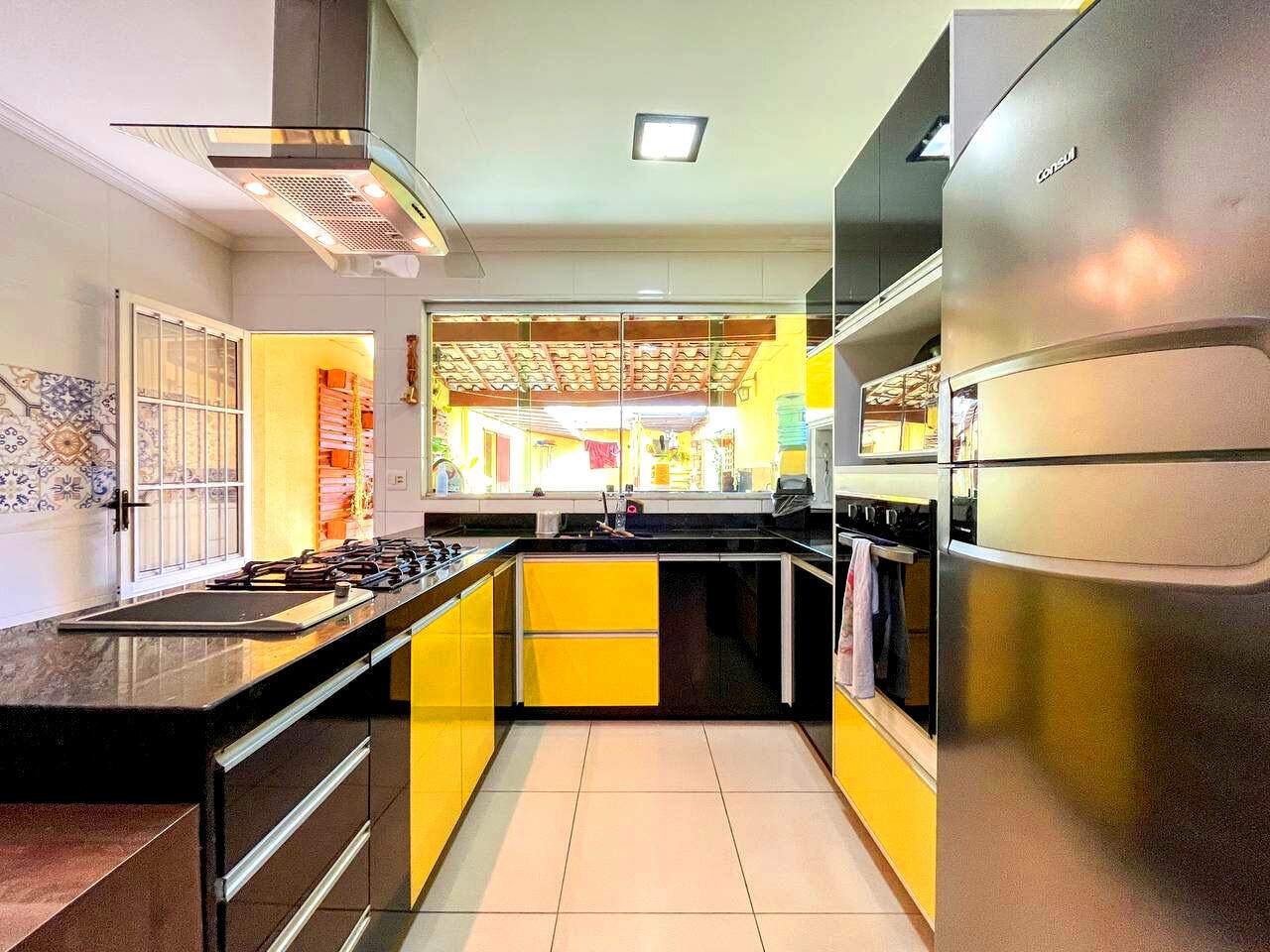 Cozinha totalmente equipada com armários planejados, ilha em granito, cooktop de 5 bocas, grill elétrico de bancada, coifa e forno elétrico;