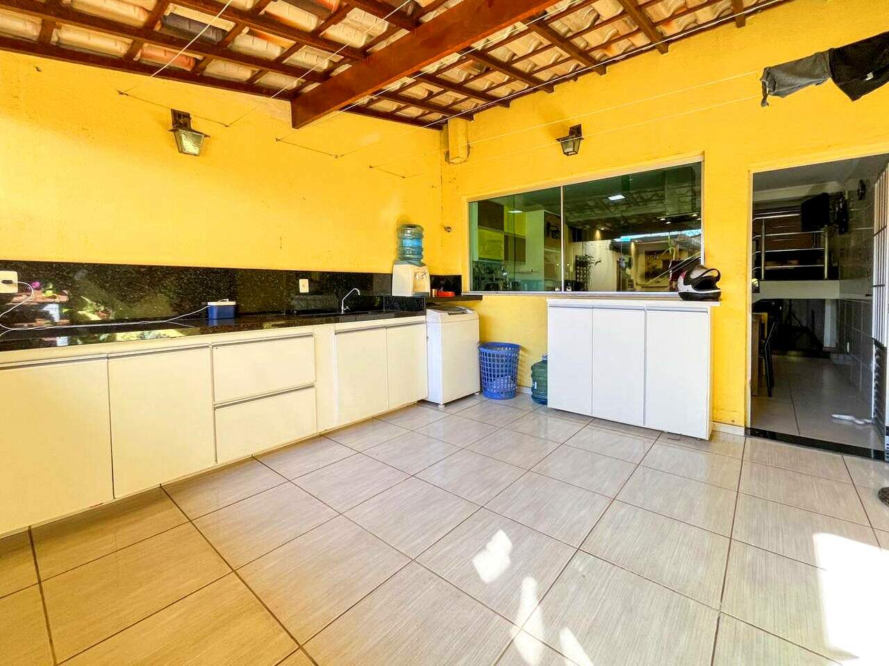 Área de serviço fora da cozinha, em espaço coberto e arejado, anexo ao quintal com lavabo;